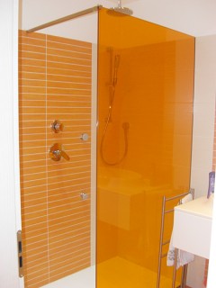 Il bagno è il regno del vetro: dai box doccia agli specchi ed ai piani di lavandino, fino ad arrivare alle nuove stilosissime pareti in vetro verniciato, usate al posto delle piastrelle.
